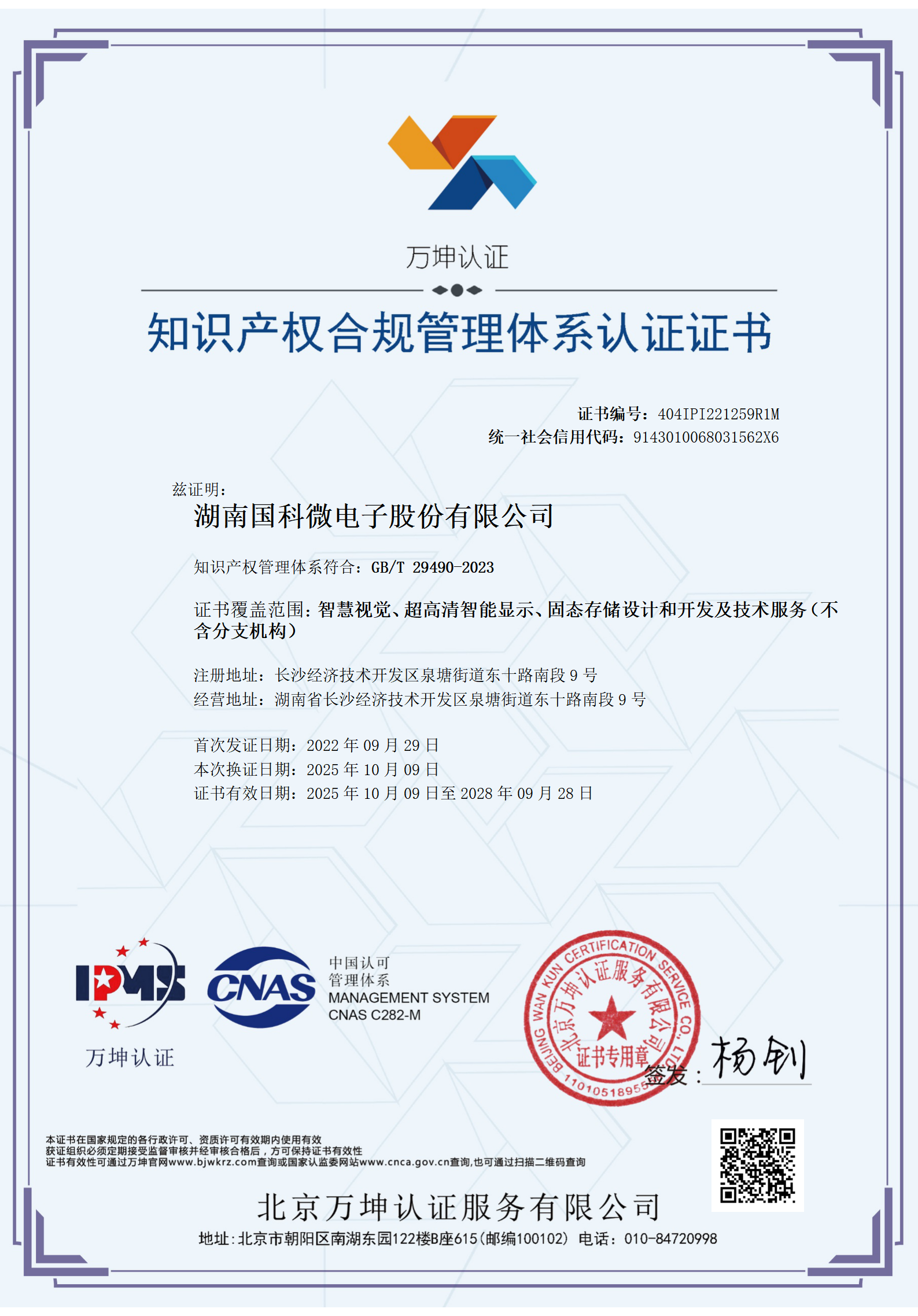 知識產(chǎn)權(quán)管理體系認證證書