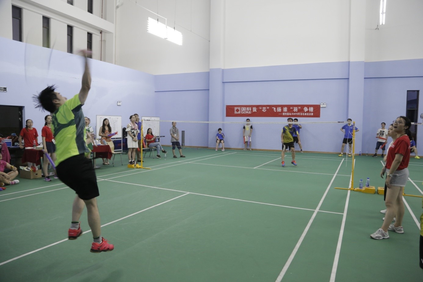 “2016年國科微電子羽毛球賽”是公司圍繞“弘揚團隊精神,編織芯片夢想”主旨,意在提升員工身體素質(zhì),增強團隊拼搏進取精神而組織開展的全員競技活動。比賽分為長沙、上海、成都、深圳四大賽區(qū),采取區(qū)域選拔和集中決賽的辦法,開展男單、女單、男雙和混雙四個項目。比賽吸引了公司80余人報名參加,分成4大項目組,累計競賽100余場,在每賽區(qū)選取4男1女5名選手代表本賽區(qū)前來長沙參加總決賽爭奪團隊榮譽。
